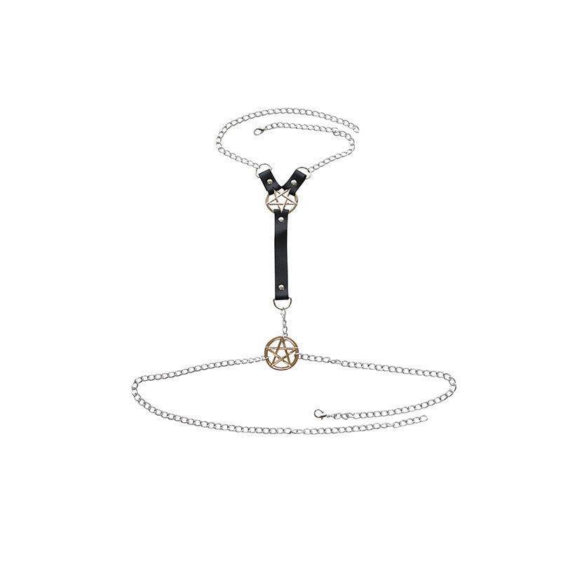 Embrace the allure of the pentagram and immerse yourself in a world where fashion and seduction converge. Order now to add the Gothic Pentagram Body Harness Lingerie to your collection and redefine your intimate wardrobe with an accessory that effortlessly fuses the mystique of the occult with the power of allure.