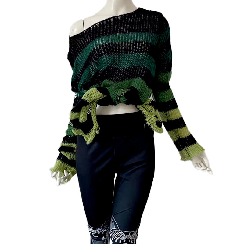 The unique broken design of this sweater is bound to command attention wherever you go. It's not just a piece of clothing; it's an expression of your individual style. Pair it with your favorite ripped jeans and combat boots for a rebellious, punk-inspired look that exudes confidence and attitude. Alternatively, style it with a skirt and tights for a more feminine take on this edgy fashion. The possibilities are boundless, enabling you to express your unique personality.